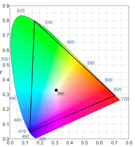 Therefore, several color spaces have been defined including DCI P3 and Rec 709 that cover some of the CIE 1931 chromaticity diagram; however, a wider color gamut as defined in REC 2020 is able to push the limits closer to the human eye.